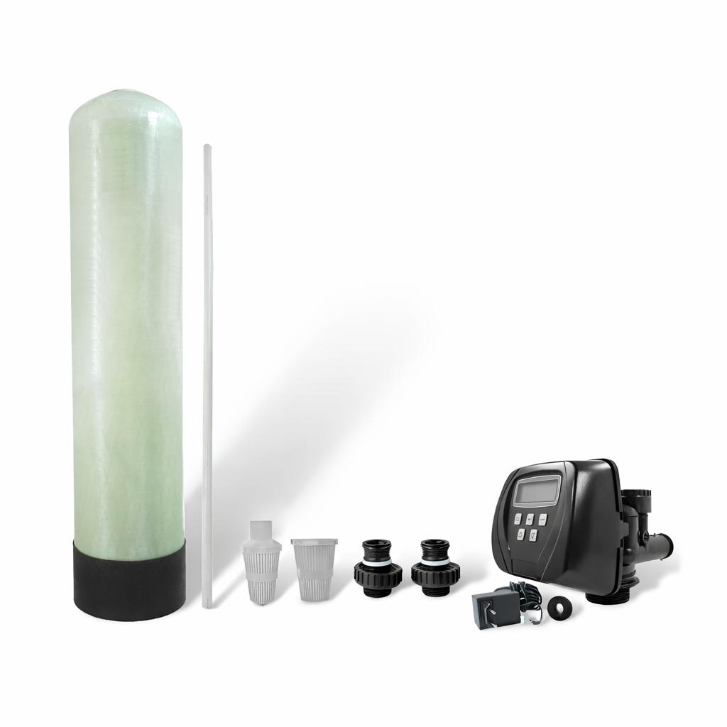 Блок управления запрограммирован для работы как фильтр, возможно проведение регенерации только в направлении «сверху — вниз» или только обратной промывки. Управляющий клапан поставляется в исполнении «с водосчетчиком» (регенерация осуществляется при прохождении заданного объема воды или регенерации по времени (вводится число дней между регенерациями (1-99) или выбирается день (дни) недели).